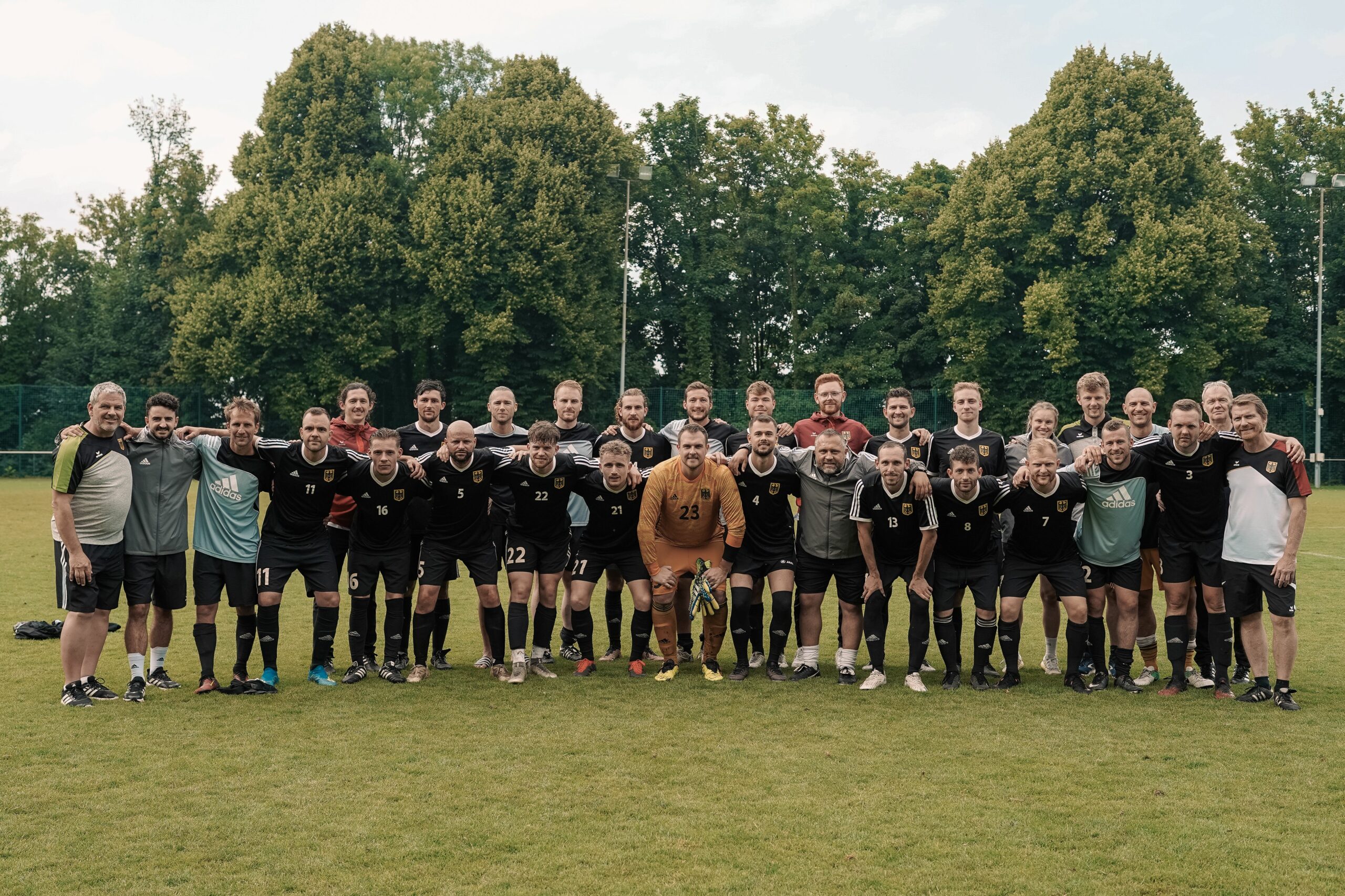 Insgesamt nahmen 24 Spieler am Trainingslager in der Sportschule Karlsruhe-Schöneck (28.06. – 01.07.2023) teil. Das Trainerteam besichtigte alle Spieler und musste auch dann die Entscheidung treffen, die Spieler zur kommenden Fußball-Weltmeisterschaft 2023 in Kuala Lumpur/Malaysia zu nominieren. Bis zum Abflug am 19.09.2023 zur WM ist nicht mehr viel Zeit. 6 Trainingseinheiten haben stattgefunden. Aufgrund eines Krankenhausaufenthaltes musste der Torwarttrainer Dirk Zimmermann die Teilnahme beim Trainingslager absagen, dafür sprang Stefan Federico als Ersatz-Torwarttrainer ein. Ursprünglich waren zwei Testspiele gegen die ukrainische Nationalmannschaft geplant, die leider abgesagt wurden.