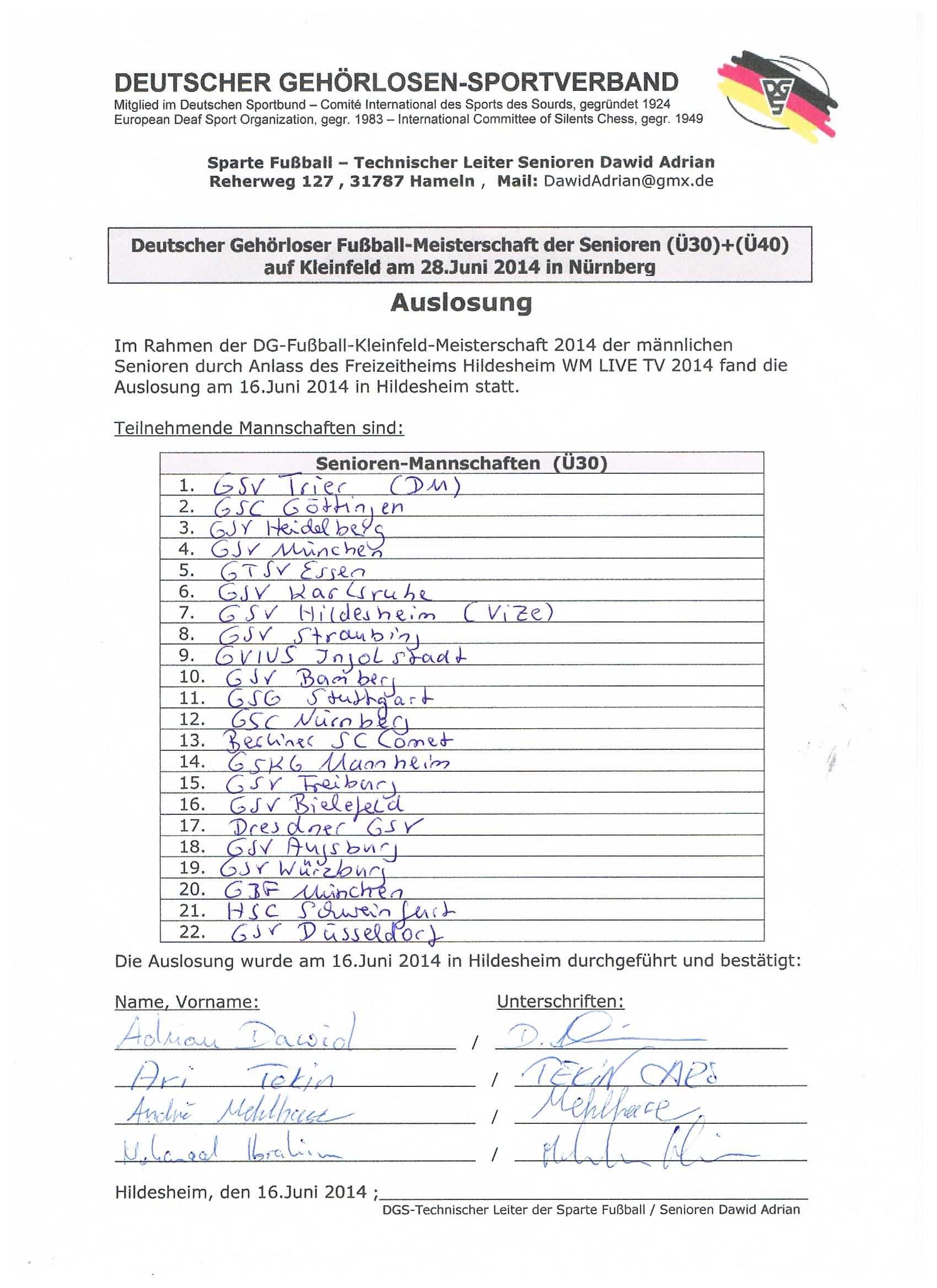 Die Siegerehrungen werden nach den Finalspielen direkt auf dem Sportplatz vorgenommen, Am Freitagabend zuvor wird im Gehörlosenzentrum in Braunschweig beim kameradschaftsabend auch die Auslosung der DG-Jugend-Fußballmeisterschaft auf Großfeld 2011/12 vorgenommen.