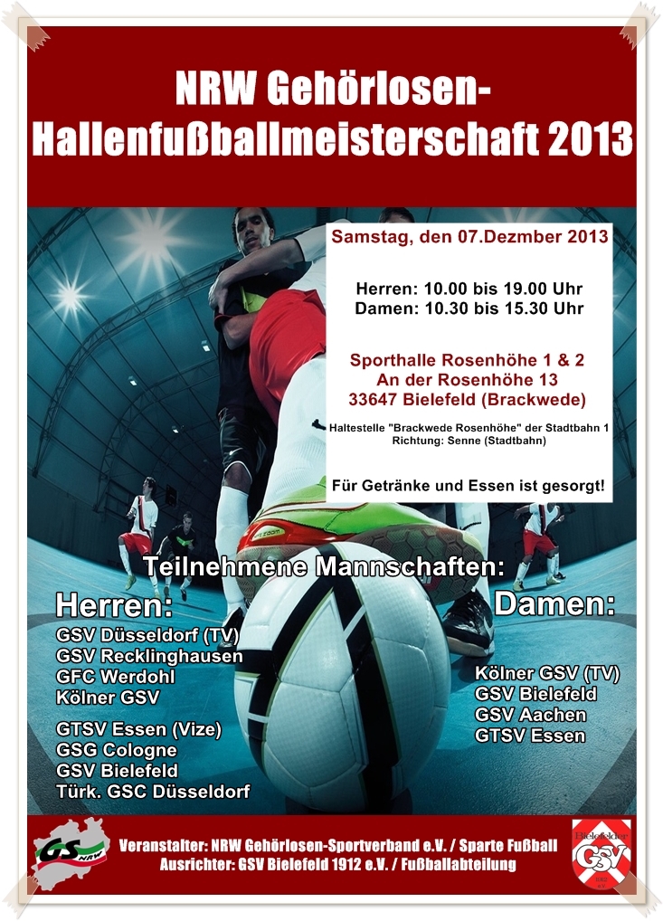 anbei sende ich euch die Ergebnisse um NRW-Gehörlosen-Futsal-Meisterschaft 2013 der Frauen am 07.Dezember 2013 in Bielefeld.