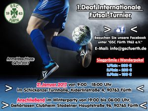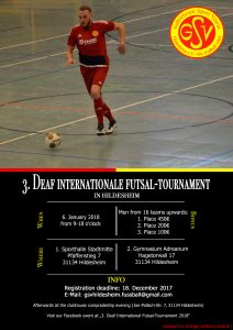 the GSV Hildesheim heartily invites you to our „3.Deaf International Futsal Tournament“ at Saturday 6.January 2018.