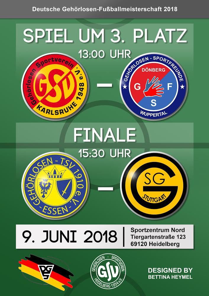 In Heidelberg fanden zwei Finalspiele auf dem sehr gutgepflegten Naturrasenplatz des Sportzentrums Nord statt. Sie wurden vom Veranstalter DGS Fußballsparte (Technischer Leiter Herren, Jens Becker und Klaus-Peter Matthies, Verwaltungsstelle) und Ausrichter GSV Heidelberg (geführt von Damien Herborn und Benjamin Heymel) durchgeführt. Die Sparte Fußball bedankte sich beim GSV Heidelberg für die gute Ausrichtung der Finalspiele und gute Zusammenarbeit.