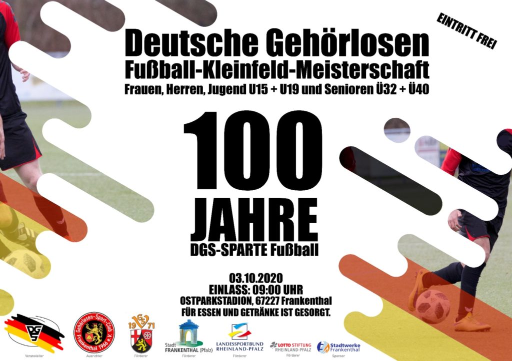 Deutsche Gehörlosen – Kleinfeld – Meisterschaft 2020 am 03.10.2020 in Frankenthal – 100 Jahre Jubiläum Sparte Fußball