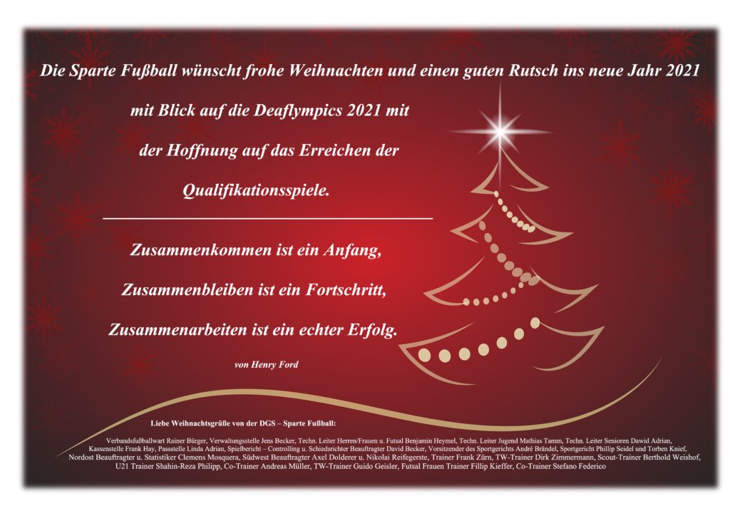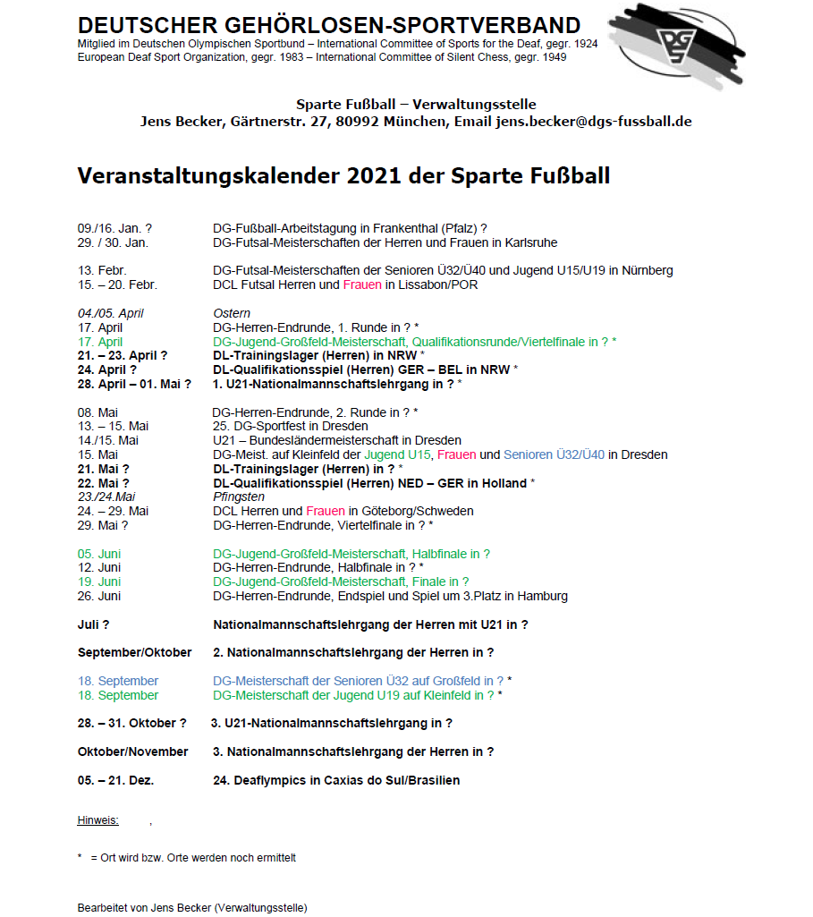 - Die Deutsche Gehörlosen Meisterschaften der Herren soll wie geplant stattfinden. Alle Fußballvereine, die in der Saison 2020/21 bei den Regionalen Gehörlosen Meisterschaften der Herren teilgenommen haben, dürfen teilnehmen.