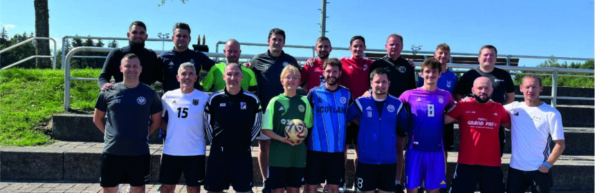 Nach dem Mittagessen ging es auf den Kunstrasen, wo der praktische Teil des Lehrgangs stattfand. Der Fokus lag dabei auf dem Lauf- und Stellungsspiel der Schiedsrichter. Zum Abschluss mussten alle Teilnehmer die Laufprüfung absolvieren. Am Ende bestanden alle 16 Teilnehmer erfolgreich die Schiedsrichterprüfung.