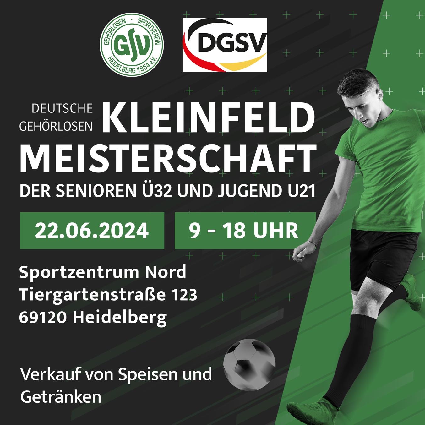 anbei die Ausschreibung für die Deutsche Gehörlosen Kleinfeld-Meisterschaft Senioren Ü32 und Jugend U21 am 22.06.2024 in Heidelberg.