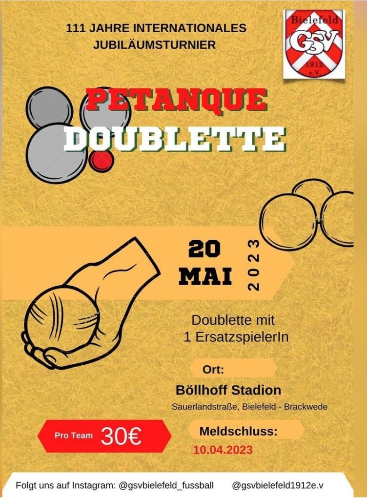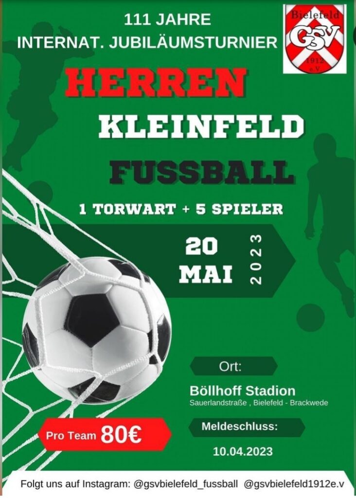 anbei die Ausschreibung für die Deutsche Gehörlosen Kleinfeld-Meisterschaft Herren und Frauen am 24.06.2023 in München. Der Ausrichter GBF München hatte leider erst letzte Woche die Bestätigung für den Sportplatz erhalten, deshalb konnten wir erst jetzt die Ausschreibung veröffentlichen.