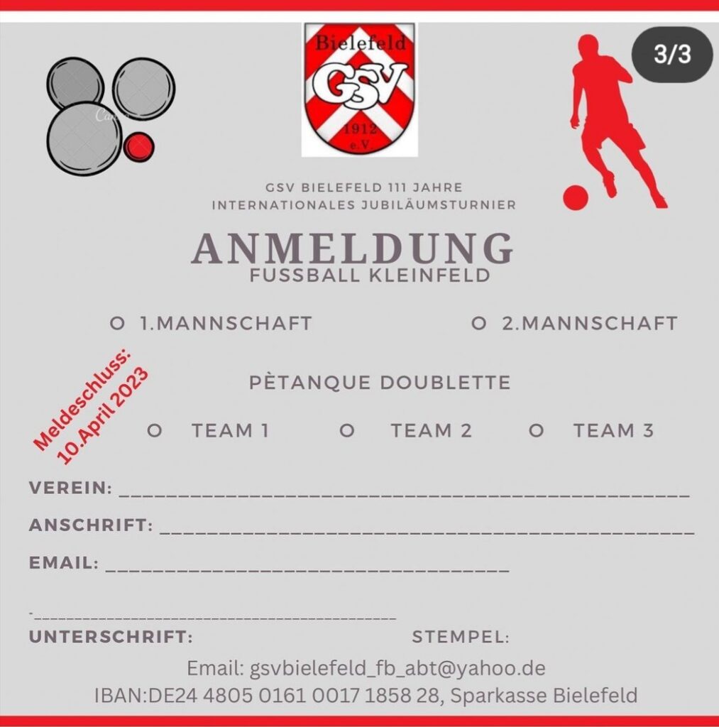 Dazu in der E-Mail eine Begründung schreiben, warum eine Spielgemeinschaft gewünscht ist. Die Anmeldung muss bis spätestens zum 15.06.2023 bei mir eingegangen sein.
