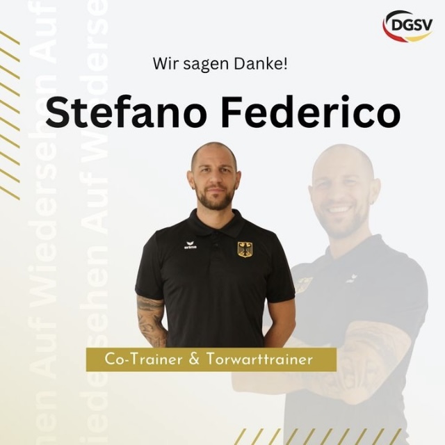 Unser Co- und Torwarttrainer Stefano nimmt Abschied. Für die Zusammenarbeit mit dem Trainerstab, mit den Nationalspielerinnen und Spartenmitarbeiter möchten wir uns im Namen der ganzen DGSV-Sparte Fußball ganz herzlich bedanken und wünschen alles Gute.