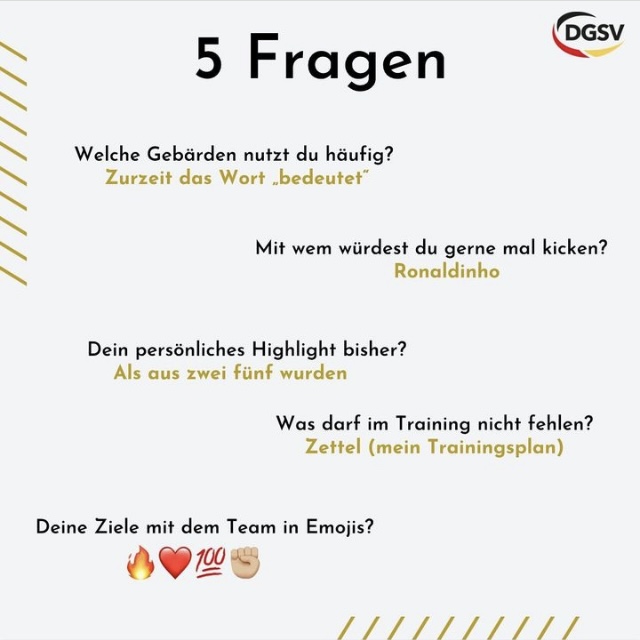 Einigen von euch sollte sie bekannt sein, denn sie ist seit Jahren beim GTSV Essen, der Rekordmeisterinnen im Gehörlosen Frauenfutsal und ist dort als Spielerin und zuletzt als Trainerin tätig. Dort hat Laura das Team im hörenden sowohl als auch im gehörlosen Betrieb trainiert, ist also eine richtige Vollblut-Trainerin. Nicht nur das – auch viele Erfolge hat Laura während ihrer Trainerin-Laufbahn erreicht, unter anderem 2x DCL-Titel und 2019 wurde sie zur besten Trainerin Europas gekürt. Auch durfte Laura bereits den Adler auf der Brust tragen und hatte 4 Einsätze für die Nationalmannschaft.