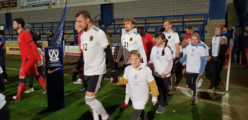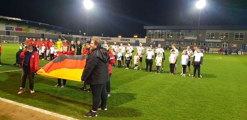 Nicht nur die Projektziele sind eine Herausforderung, es war auch für die deutsche Mannschaft eine Herausforderung, in kurzer Zeit eine Mannschaft auf die Beine zu stellen, die dort antreten konnte – die Chance für Nachwuchstalente, das erste Mal im deutschen Trikot anzutreten. Sieben junge Spieler nutzen diese Chance und traten gemeinsam mit neun Spielern aus dem Kader der deutschen A-Mannschaft im Fußballstadion des AFC Telford United vor knapp tausend Zuschauer*innen an.